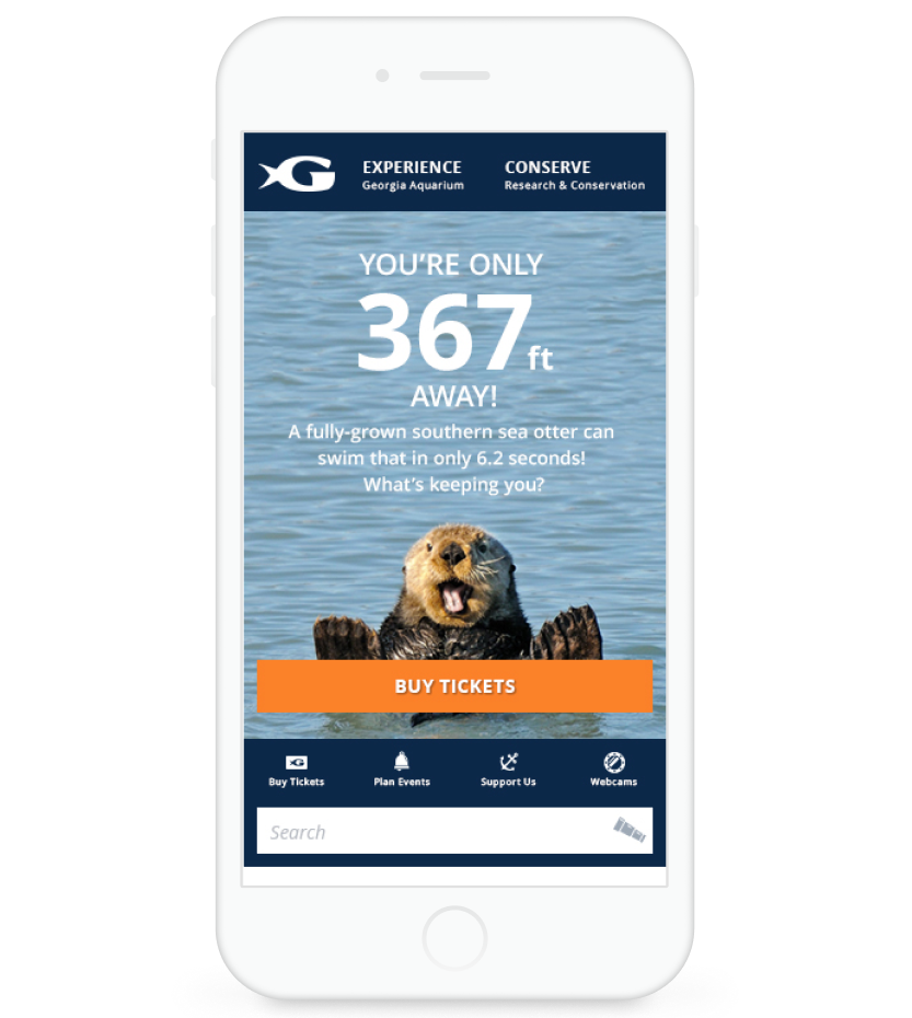 Through geo-targeting users within walking distance of the aquarium are greeted by fun animal facts related to their distance from Georgia Aquaium.