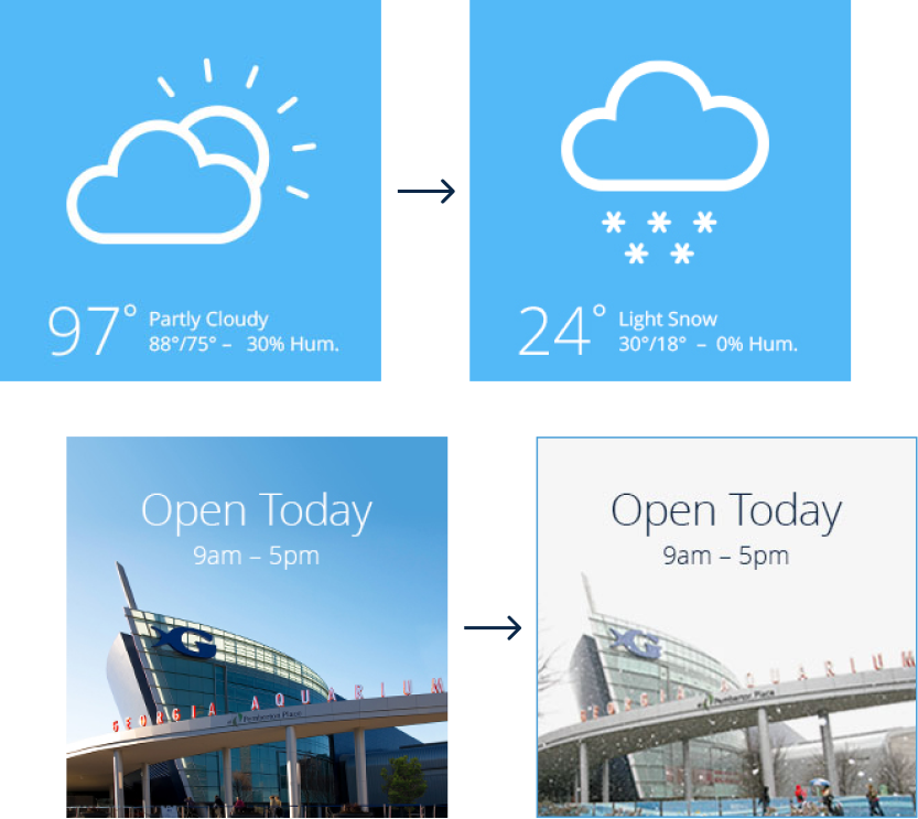 Real-time weather and daily operating hours aid attendees while planning their same day visits.